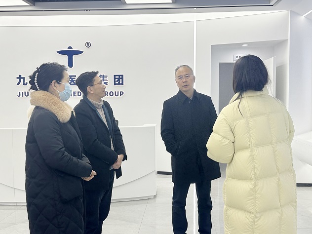 On December 18, Qian Deping, Member of the Working Committee and Minister of Organization of Wuhan East Lake New Technology Development Zone, Yu Yanfei, Director of the Industry Division at the Wuhan National Bio-Industry Base Construction Service Center, Lin Guohua, Chairman of Chang'e Bio Co., Ltd. and President of the Optics Valley Bio-Anti-Aging Industry Association, along with a delegation, visited the core area of Future Science City in the Optics Valley East Lake National Independent Innovation Demonstration Zone to conduct an on-site research and inspection of the Jiutouniao Medical Group.