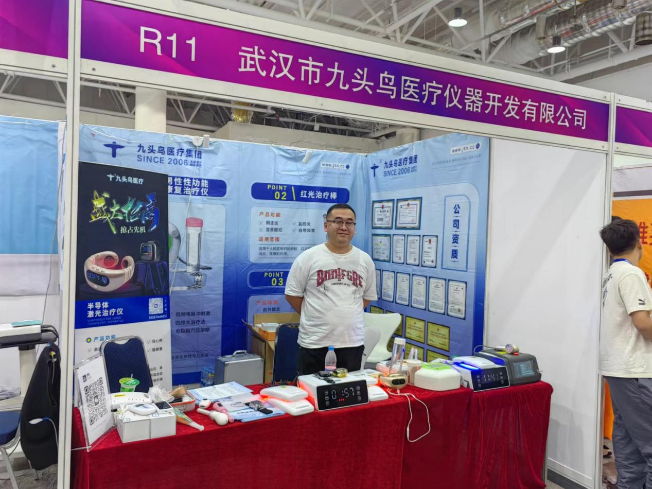 As a smart healthcare and elderly care enterprise, our future focus for the Jiutouniao medical application will be on home-based health management and primary-level health care. We aim to develop initiatives that promote seniors' health, provide rehabilitation assistance and training, and leverage the power of the internet. + Smart healthcare and health scenarios, such as medical care : Smart elderly care scenarios such as family-based nursing beds, community daytime care services, home-based in-home care services, senior dining halls, smart nursing homes, and elderly care service supervision—along with integrated models that simultaneously deliver both smart health and smart elderly care services (e.g., medical-care integration)—are all designed to provide comprehensive, convenient support for the aging population. Looking ahead, future development should focus on centralized, integrated, and ecosystem-oriented approaches to health management, delivered primarily through online platforms. APP As a foundation, we will comprehensively gather the individual needs of seniors seeking healthy aging solutions, tailoring personalized health and care plans for diverse population groups. Simultaneously, both online and offline platforms will be equipped with dedicated health managers and attending physicians, working collaboratively within medical-care teams to provide specialized, coordinated support—ensuring that every senior truly feels "well-cared for in their golden years." This initiative aligns with national calls and reflects the evolving market trends. Additionally, Jiutouniao Medical brought a wide range of products to this exhibition. The company has consistently pursued the path of integrating medical and healthcare products into everyday household use, making home-based solutions accessible to families nationwide and helping safeguard patients' health. Among the products on display are the Male Sexual Function Rehabilitation Therapy Device, the Red Light Therapy Wand, the Neck Semiconductor Laser Therapy Device, the Wristwatch Semiconductor Laser Therapy Device, as well as red light and red-blue light therapy devices, and treatments for nail fungus.