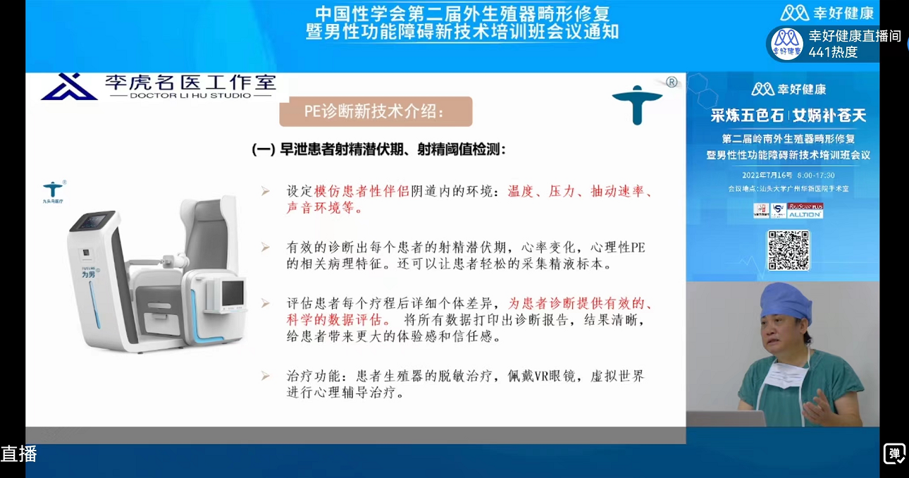 After introducing the diagnostic equipment for male erectile dysfunction, Director Li Hu went on to explain the design concept and practical applications of the Jiutouniao Premature Ejaculation Treatment System. The Jiutouniao system is the first domestically developed treatment solution specifically tailored for premature ejaculation, designed and produced based on comprehensive clinical guidelines and refined through a series of expert recommendations. Key components of the system include sensitivity testing of the penile head, assessment of penile nerve sensitivity, diagnosis of the patient’s ejaculatory latency period, as well as pelvic floor muscle therapy and desensitization training.