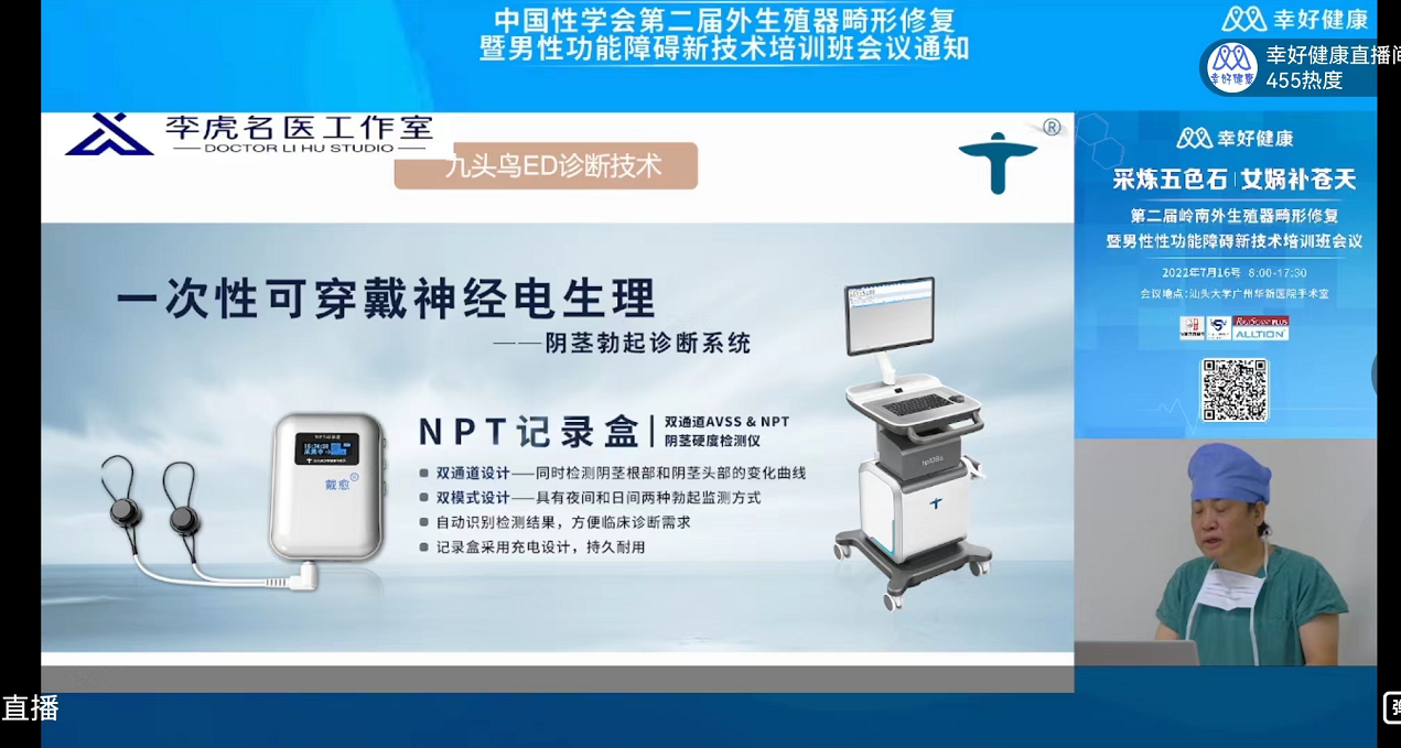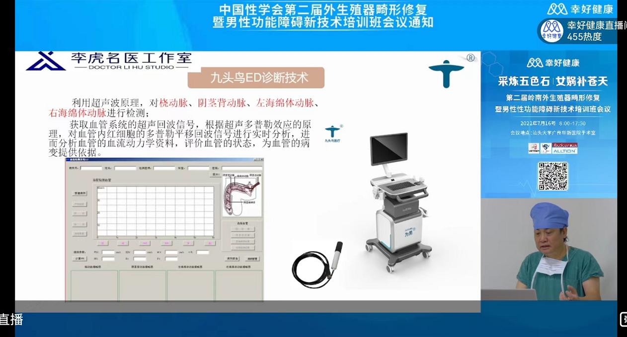Director Li Hu first introduced the localization of the Jiutou Niao device and its application of dual-channel penile rigidity measurement in diagnosing male erectile dysfunction. The Jiutou Niao penile rigidity tester utilizes cutting-edge global dynamic sensing technology, analyzing penile hardness and the number of erections by tracking changes in penile diameter. The software features fully automated analysis of erection curves, seamlessly generating comprehensive test reports. Additionally, Doppler ultrasound blood flow testing was discussed as a complementary tool for conducting more detailed clinical assessments on patients experiencing insufficient erectile rigidity.